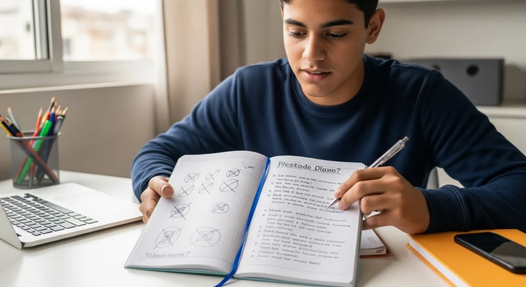 Uma forma simples de prevenção é manter um padrão de registro. Sempre que travar, anote o tema, a etapa do bloqueio, sua tentativa e o tipo de ajuda que funcionou melhor. Em pouco tempo, você começa a perceber seus padrões.
