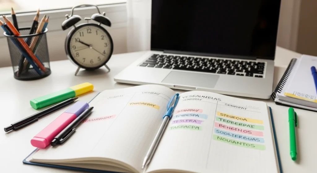Outro erro frequente é tratar todas as matérias como se tivessem o mesmo peso e a mesma dificuldade. Isso costuma lotar a agenda com tarefas “bonitas”, mas pouco estratégicas. Também atrapalha não dizer se já existem resumos, listas resolvidas ou flashcards prontos.