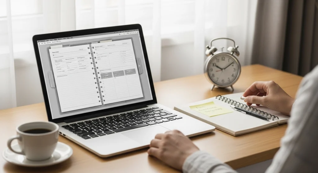 Outra prática útil é separar blocos fixos apenas para o que se repete. Exemplo: retorno de mensagens no início da tarde, revisão rápida no fim do expediente e planejamento do dia seguinte antes de encerrar. O restante pode ficar flexível.