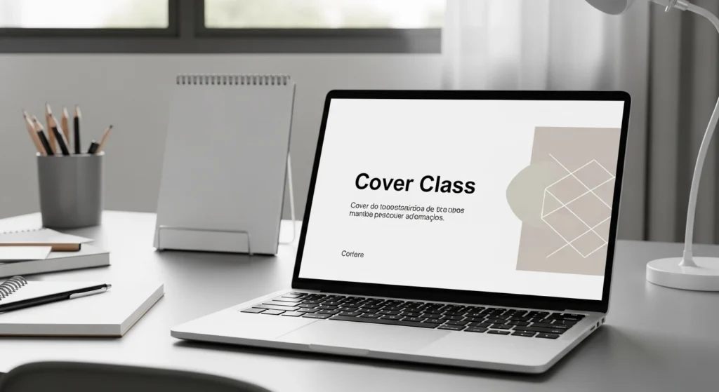 Em aula online, a capa costuma abrir o encontro e também pode aparecer no material enviado depois. Nessa situação, vale priorizar título forte, identificação breve e visual discreto. O aluno não precisa de uma peça publicitária; precisa de orientação visual imediata.