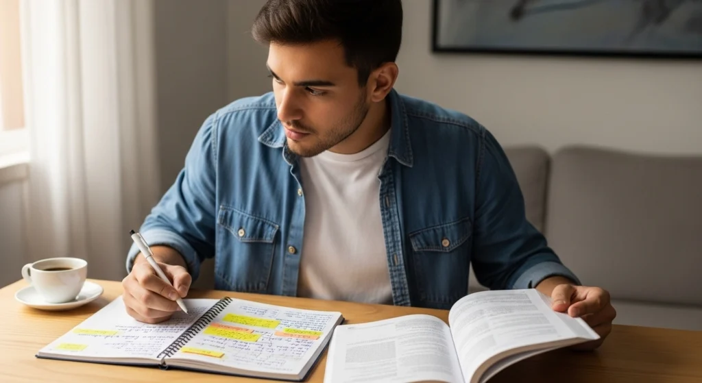 Outra prática eficiente é revisar em camadas. Primeiro, releia a explicação resumida. Depois, teste um exemplo parecido. Em seguida, tente explicar para si mesmo sem olhar. Quando você consegue reproduzir a lógica com palavras próprias, o entendimento começa a ficar mais estável.