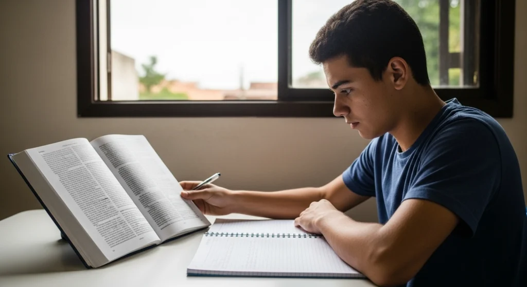 Por fim, reescreva as partes principais com suas próprias palavras. Essa etapa mostra se houve compreensão de verdade ou se você apenas reconheceu o texto sem conseguir explicar o conteúdo sozinho.