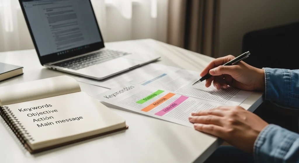 A melhor prevenção é escrever já pensando em blocos curtos. Antes de começar, defina qual é a mensagem principal, quem vai ler e qual ação ou entendimento o texto precisa gerar. Isso reduz a chance de mistura logo no rascunho.